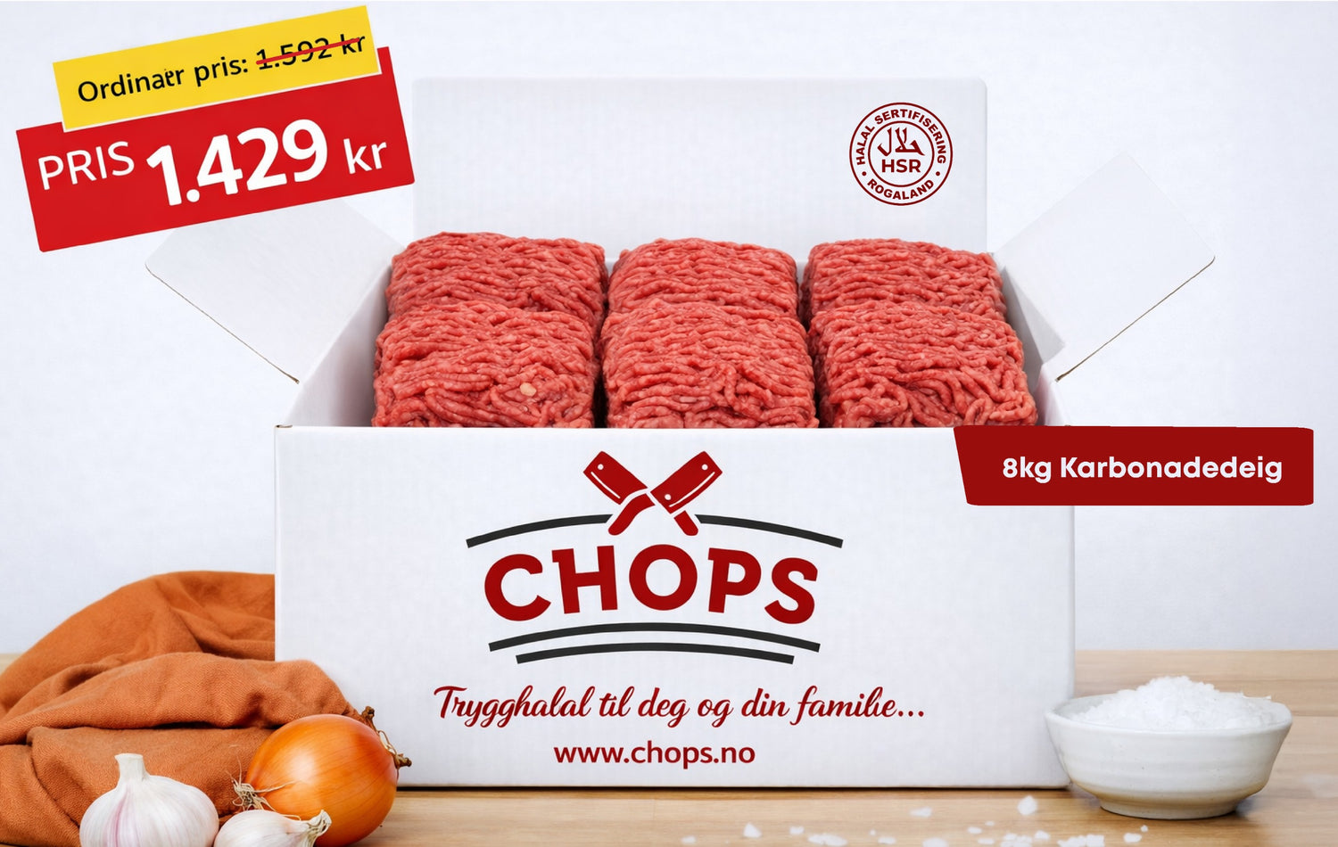 Pakken inneholder 8kg Karbonadedeig som passer til sambusa, gryter, pasta og risretter gjennom hele Ramadan. Dette er en rimelig og praktisk pakke.